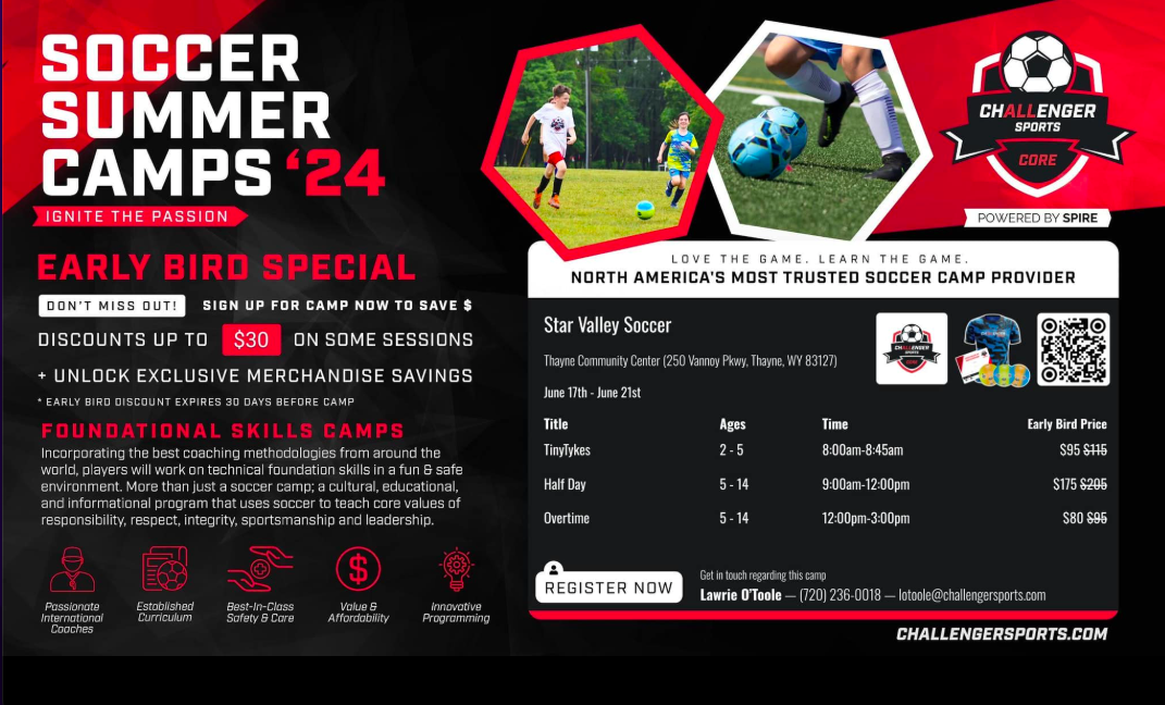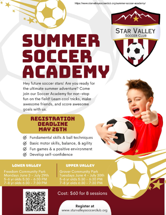 Star Valley Soccer Club offers youth ages 7 to 18 the chance to train with experienced coaches and compete at higher levels of play.